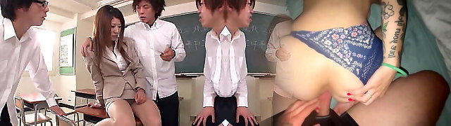 Japanese students find pic of her educator in sex magazin, so she must poke them all to keep them quiet, full uncensored JAV movie