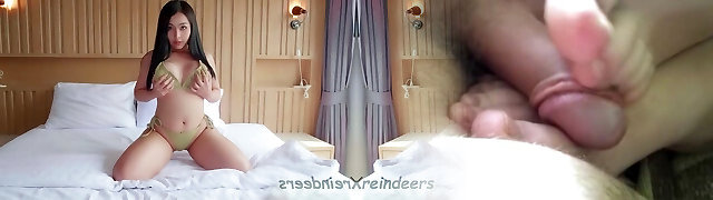 Sexy Busty Asian Pleases Her BF's Dick With Her Hands Moth Feet And Cock-squeezing Shaved Pussy