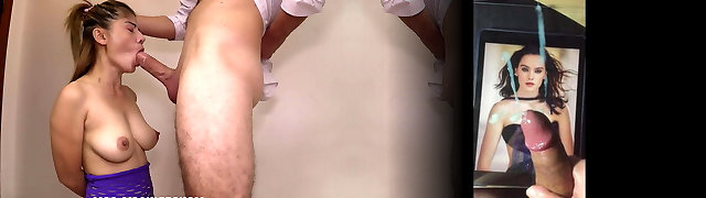 Huge-boobed Asian blows a load more than once and begs for load on her face
