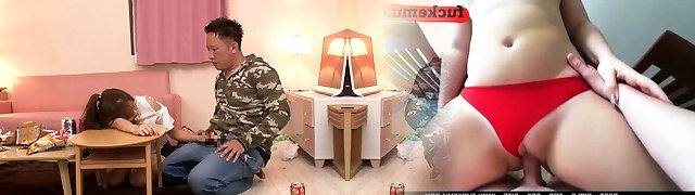 Kinky Asian schoolgirl gobbles a rock hard dick and gets her bal