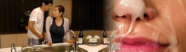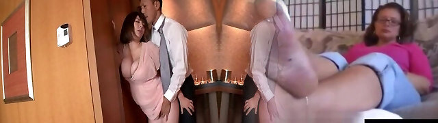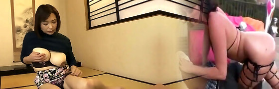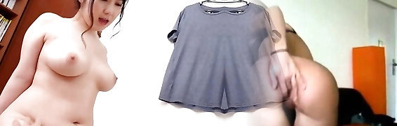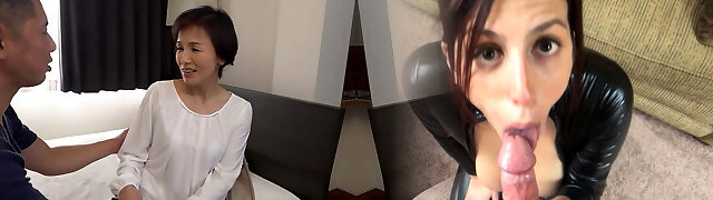 Chubby Japanese neighbor gives a titjob and rides his rock-hard dick
