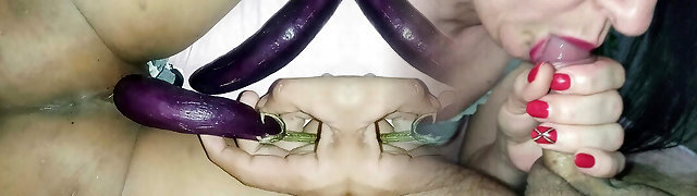 Two large eggplants wreck mom-in-law's genitals xxxxxxxxxxxx part 1