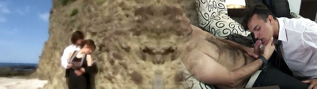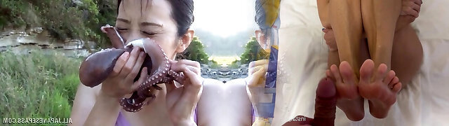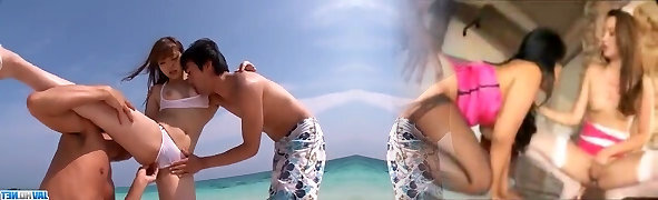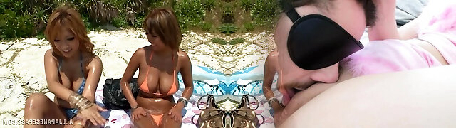 Squirting japanese babes suck spunk-pump on beach