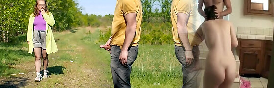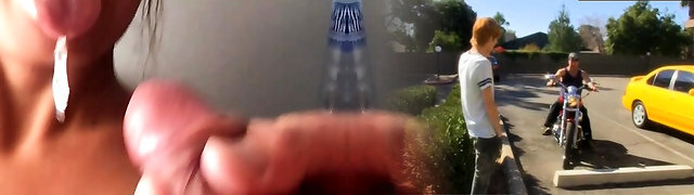 Divine hottie plays with stranger's pecker in the outdoors
