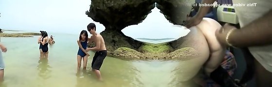 Group sex on the beach leads to creampie asian vags