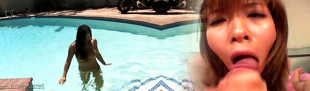 Flawless japanese milf in fancy bikini Rei Aimi sucks and fondles a hard rod