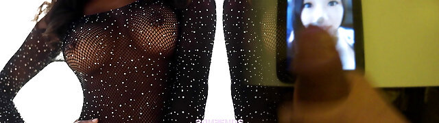 Beauty in rosy fishnet top Jayden Lee provides horny Jmac with nice titjob