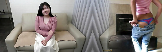 Asian BABE FUCKED HARD ON THE SOFA CREAMPIE