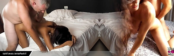 Bouncy butt Asian damsels Suki and Miki have a FFM threesome