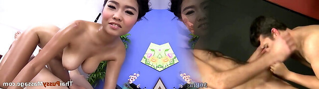 Naturally busty Thai slut gets a deep tissue massage