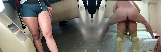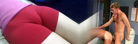 Teenie tight pussy in a short leggings with a big package to squeeze.