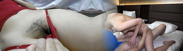 She lays in her taut red panties on her puffy vag and I wring her hairy Cameltoe until she takes her panties off