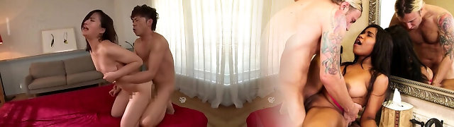 A very lucky dude gets to pulverize two hot Asian honies at once