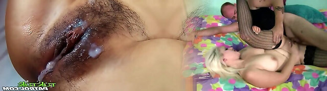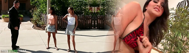 Dude with a big cock fucks two skinny nextdoor damsels
