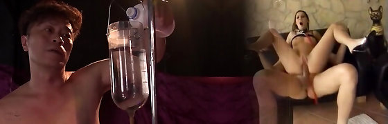 AMWF, A thick milk cans girl and full-face mask, fetish play