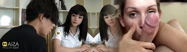 Kinky Asian schoolgirl gobbles a rock hard dick and gets her bal