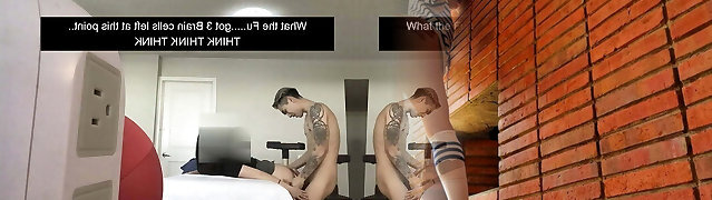 Miho Tsujii cheerfully deep gullets man sausage while being pounded, flashing her tattooed assets and stockings in a hardcore threeway - a uber-sexy Asian po