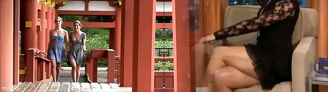 Lesbian couple kissing and flashing at a Japanese temple