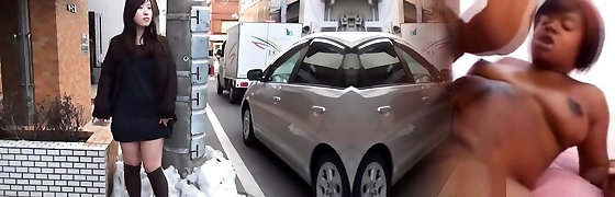 Pretty Japanese maid lets the dude touch her beaver in the van