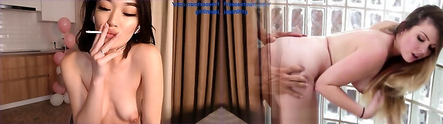 Cool asian smoking and fingering pussy on webcam