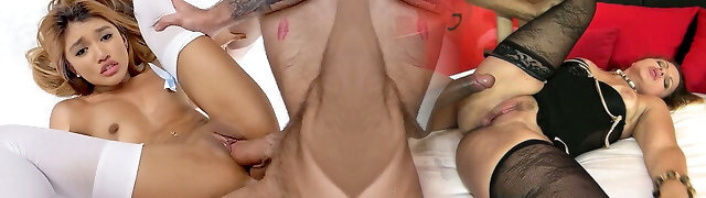 Super flexible Asian brunette chick sucks white dick and gets taut twat drilled