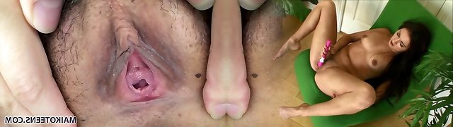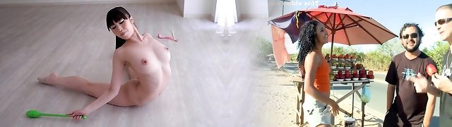Flexible Japanese gymnast toys her snatch and dances while str