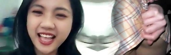 Asian gloryhole fun with cumlicking solo babe