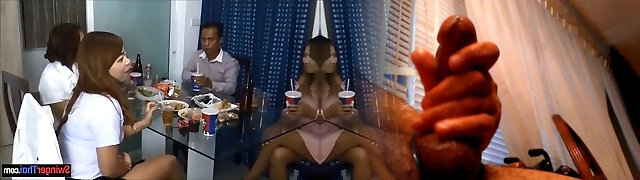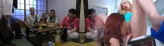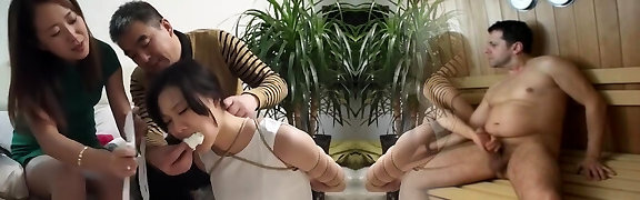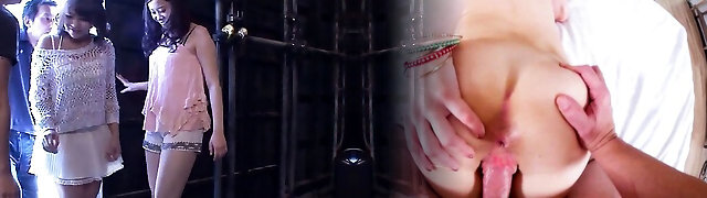 Three shy Asians get seduced by the naughty guys during dinner and have group sex