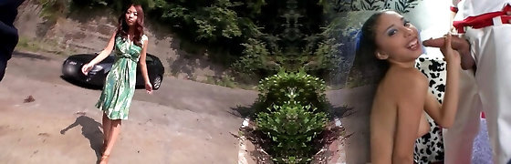 Asian babe gets facial cumshot outdoor after sucking dick and getting finger-banged