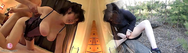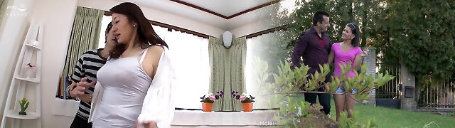 Big tits Japanese wifey gives her hubby a jug job then gets plowed hardcore
