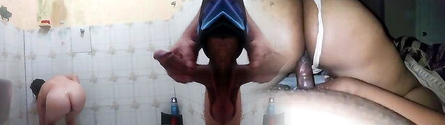 stepson looks at his stepmother in the bathroom, ends up fucking her bum