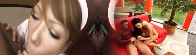 Asian nurse hardcore nailed in threesome after sucking two boners