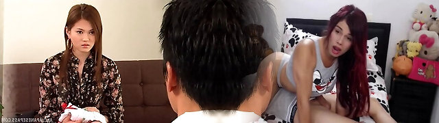 Hot Asian nurse lets a boy rub her ass before sex