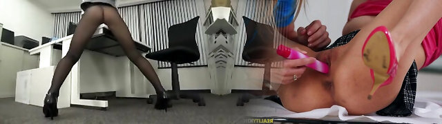 Torn pantyhose make a thick ass asian extra horny and extra cock hungry