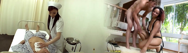 Fabulous Asian nurse in nylons gives head job and gets pussy licked