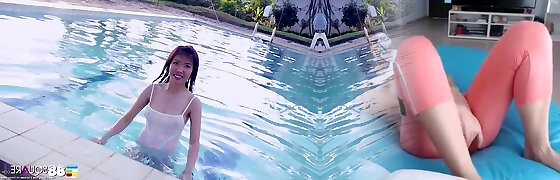 Nubile Young Chinese Strokes Her Sweet Vag In The Pool On A