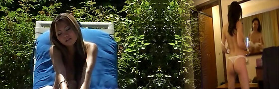 Skinny ass Asian sluts are having fun by the pool