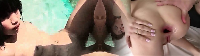 Chinese milf Marica Hase gets her pink pucker blacked by the poolside