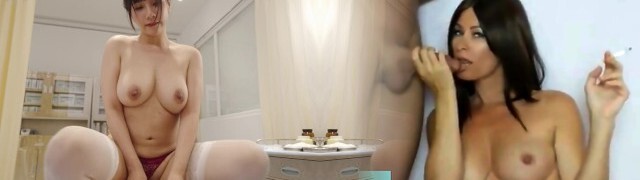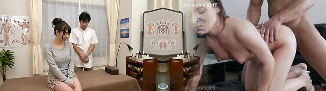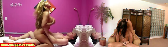 Bigtitted asian masseuse tugging and sucking