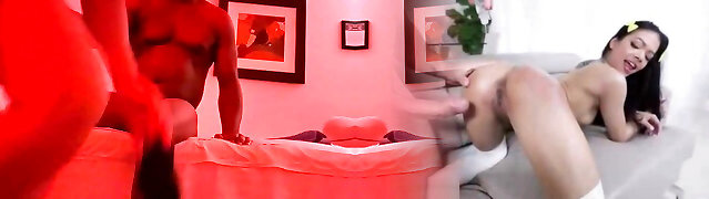 Black guy chokes Cindy while drilling her cunt on the sofa