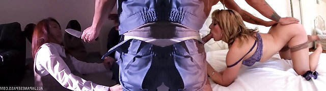 Mature Asian Wife Having a Flow with Two Jizz-shotguns in Threesome