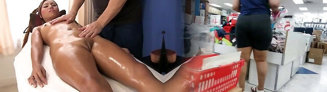 Cute Thai lady massaged and fucked on the table