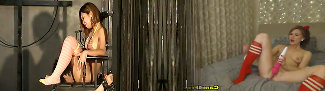 Asian Lesbian slaves strapon sex training