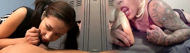 Asiatische Cheerleaderin laesst sich in der Umkleide von Ihren Lehrern ficken