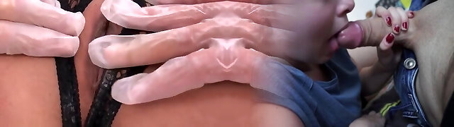 Girlfriend sucking with her hands tied