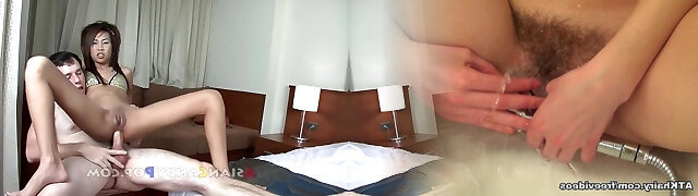 Dünne Asiatische haarige Lehrerin bekommt anal internal ejaculation und Sandwich