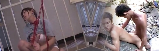Svelte Japanese nymphomaniac Azusa Uemura gets roped up and fucked by dudes