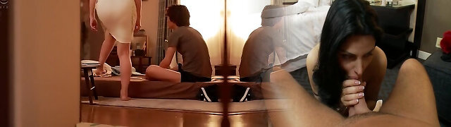 Japanese cougar slut gives her snatch to her husband's coworker at dinner time!