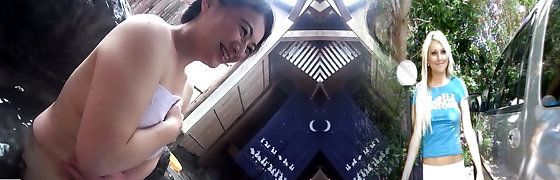 Little Asians - Lucky Dude Caught His Big Assed Roommate Frolicking With Her Vibrator And Helps Her Cum