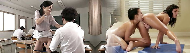 Japanese PE teacher fucked by two schoolgirls in a classroom